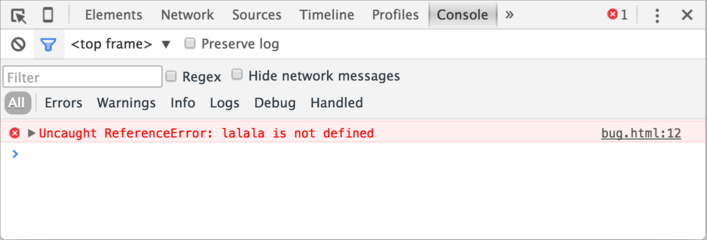 bug.html:12的可点击链接,点击可直接跳转到错误发生的精确行号处。 - 命令行交互区:底部带有