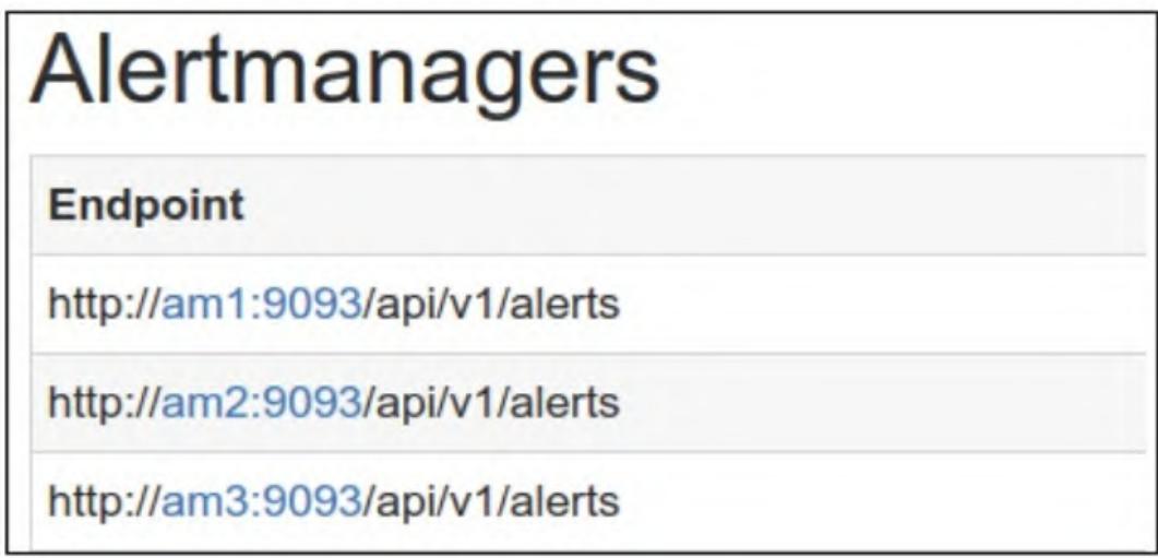 - names: ['_alertmanager._tcp.example.com']验证:重启Prometheus后,在状态页面可查看所有连接的Alertmanager节点。