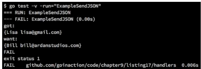 如果输出与期望不匹配,go test会显示差异(图10)。