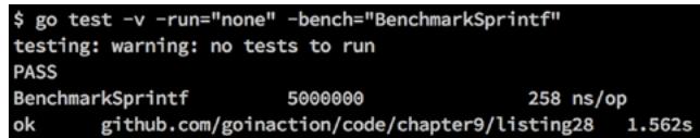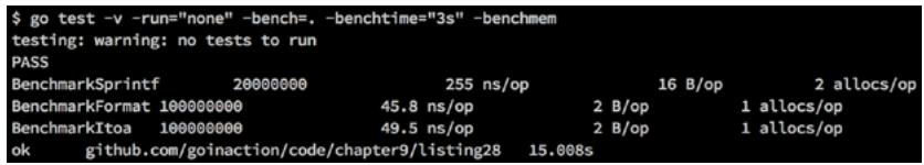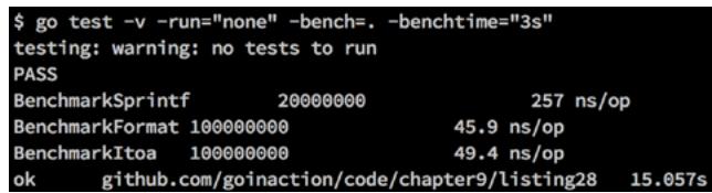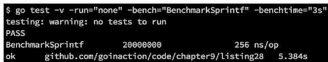 go test -bench="BenchmarkSprintf" -benchtime=3s图12:使用-benchtime选项运行基准测试
