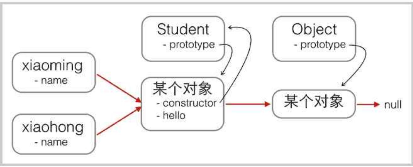 注意最后一行代码把 xiaoming 的原型指向了对象 Student,看上去 xiaoming 仿佛是从 Student 继承下来的:
