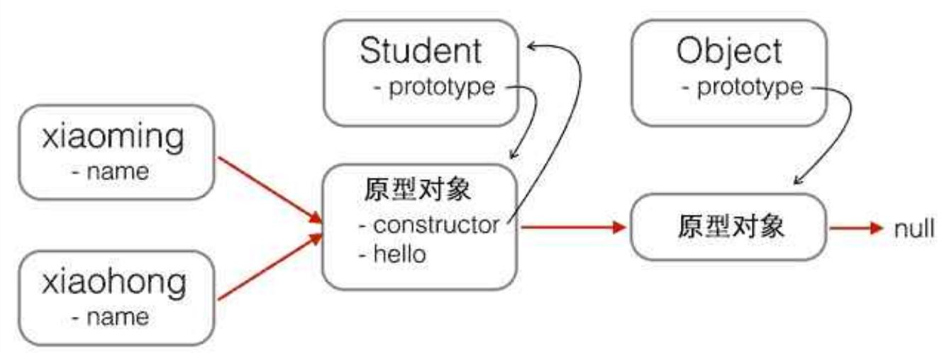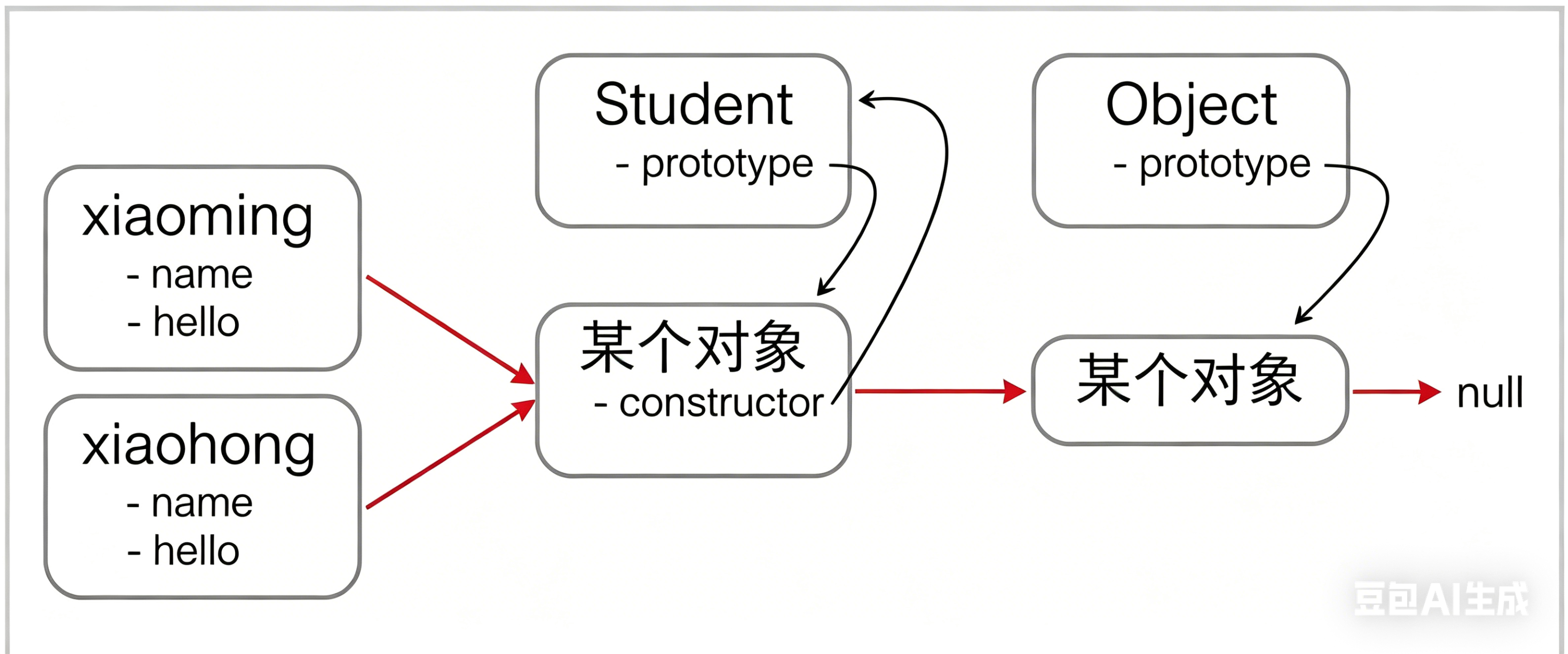 简单来说,整个闭环是:函数定义时自动获得 prototype 原型对象 → 原型对象自带 constructor 指回函数 → new 出的实例通过内部原型关联到该原型对象。因此我们可以认为,xiaoming、xiaohong 这些由 Student 创建的对象,都 “继承” 自 Student.prototype。