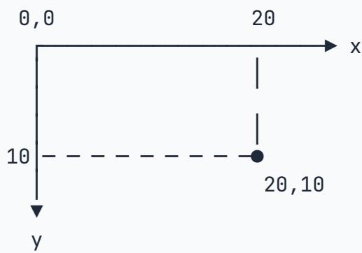 Canvas坐标以左上角为原点,水平向右为X轴正方向,垂直向下为Y轴正方向,单位是像素。