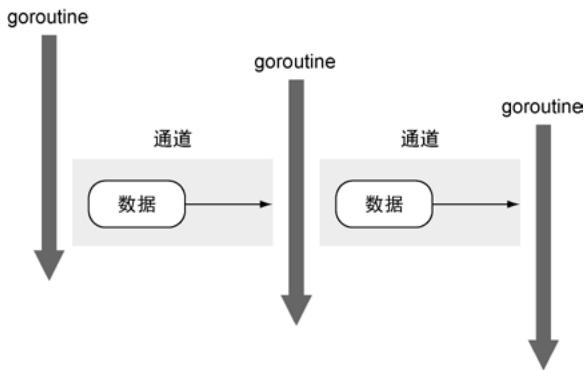 在图2的示例中,三个goroutine通过通道进行数据传递: