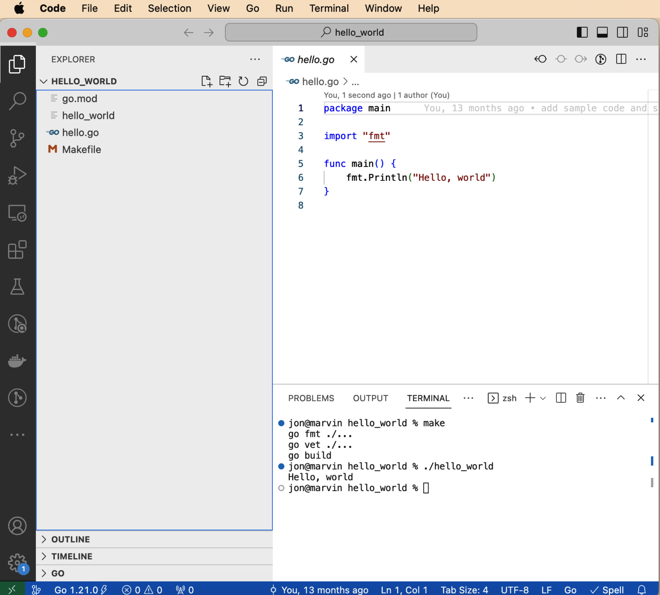 现在,让我们通过经典的“Hello, World!”程序,快速熟悉 Go 项目的创建和核心工具。