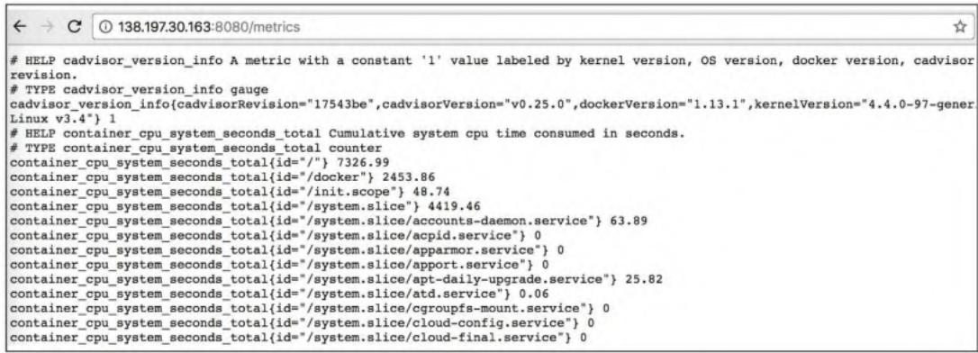 - targets: ['138.197.26.39:8080', '138.197.30.147:8080', '138.197.30.163:8080']重载Prometheus配置后,即可采集容器指标。
