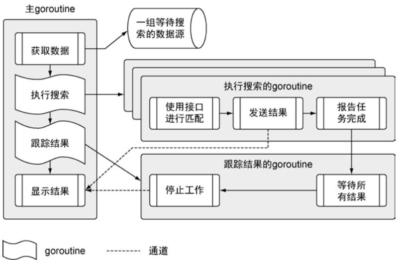 - 监控goroutine等待所有搜索完成