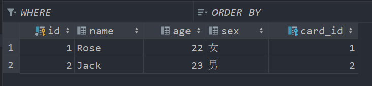 values ('Jack', 23, '男', 2);完成上述操作后,ch4_tb_idcard 表和 ch4_tb_person 表中的数据如图所示。