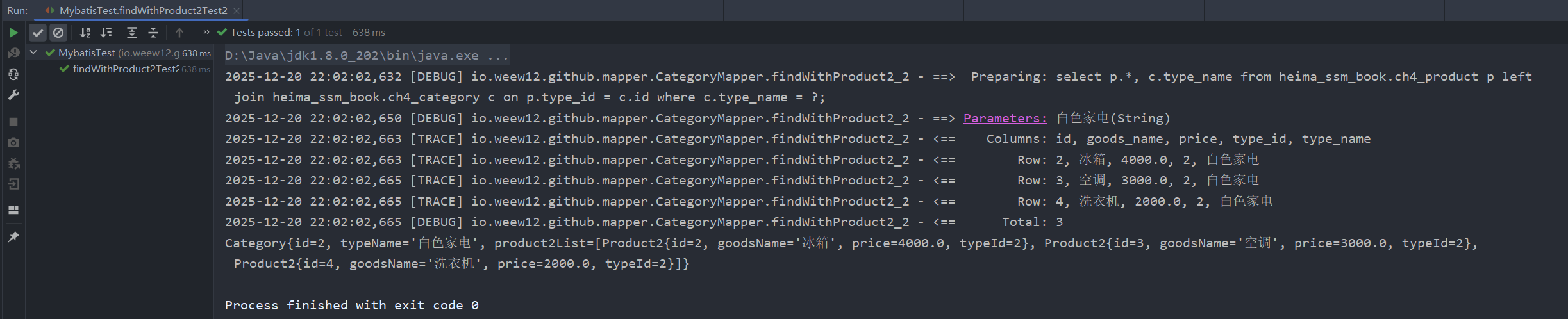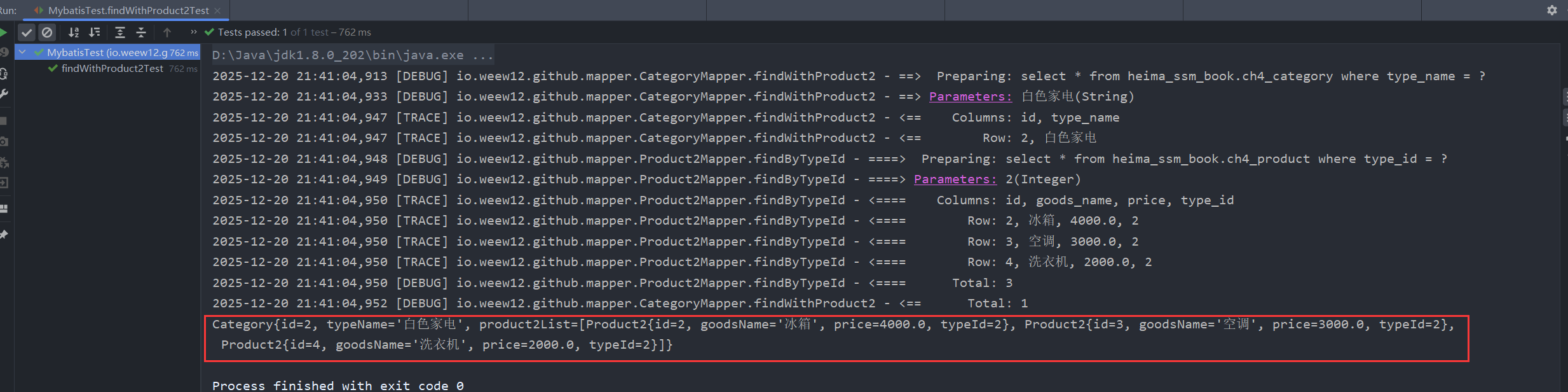 List<Category> withProduct2 = categoryMapper.findWithProduct2_2("白色家电");