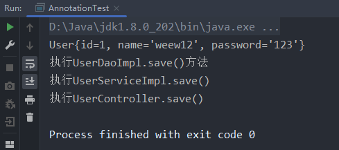 }在IDEA中运行 AnnotationTest 类,控制台输出结果如图所示。