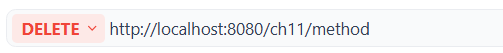 | http://localhost:8080/ch11/user/1 | HTTP DELETE | 获得参数1进行删除user操作 |